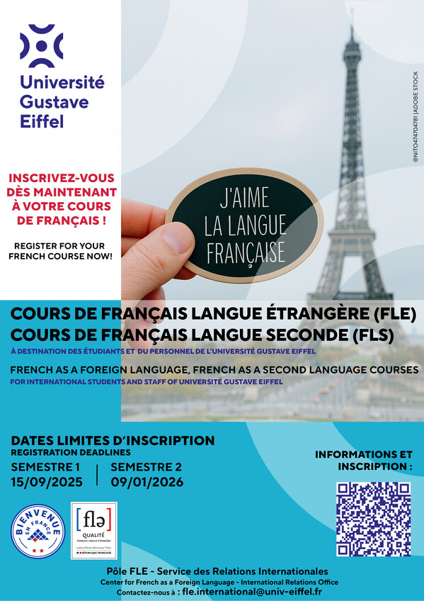Le Pôle FLE du Service des Relations Internationales de l’Université Gustave Eiffel propose chaque semestre des cours de Français Langue Étrangère (FLE) et de Français Langue Seconde (FLS), destinés tant aux étudiants internationaux qu’au personnel de l’Université.