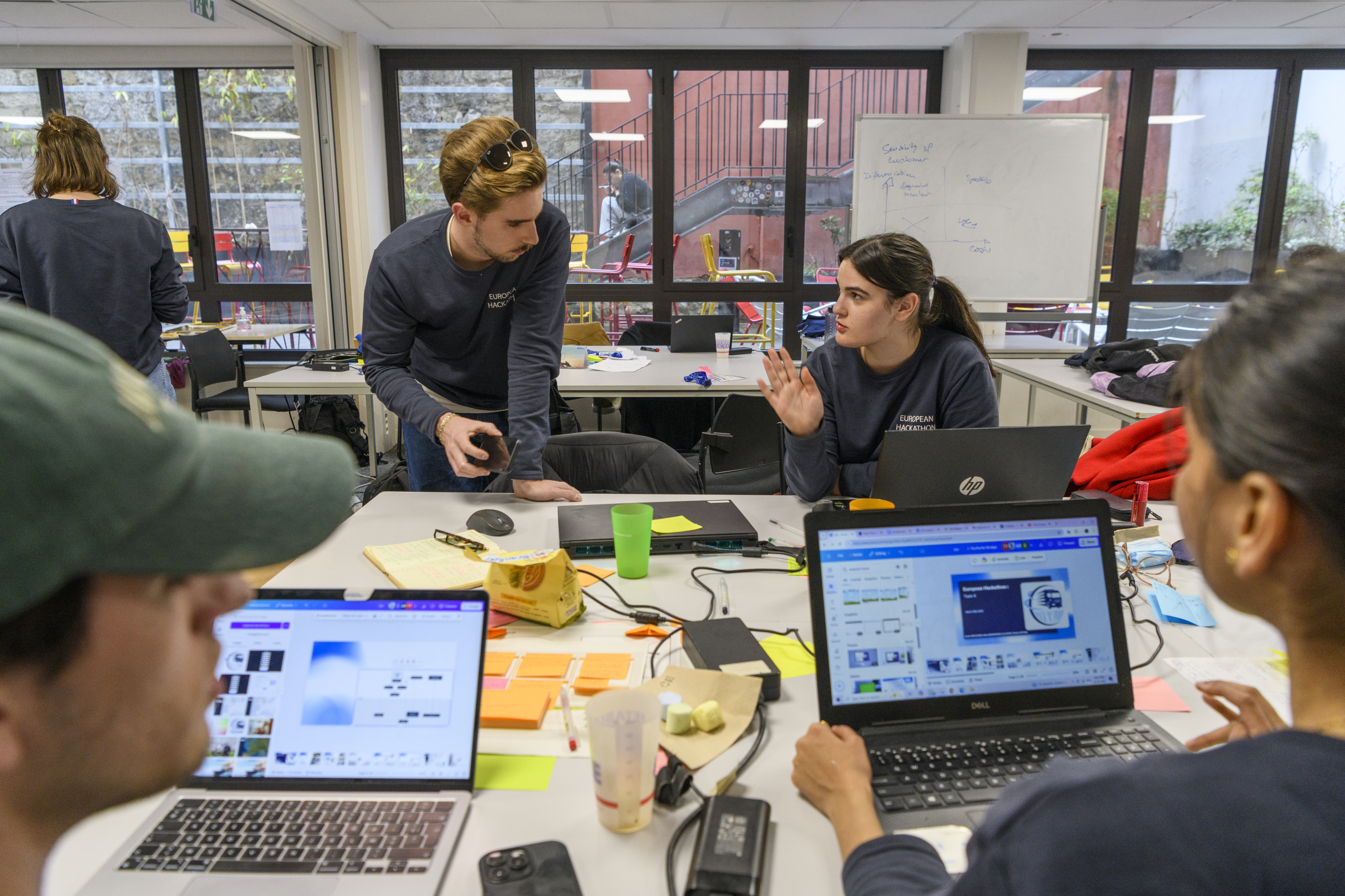 « Le hackathon nous offre l’opportunité de travailler avec des étudiants de différents pays et spécialités. Ça nous permet de considérer de nouvelles perspectives, de réfléchir à notre carrière future et de développer des softs skills, notamment pour travailler ensemble en confrontant nos opinions et nos différences » pour Mariangela Durigon, étudiante en design de l’IUAV de Venise.