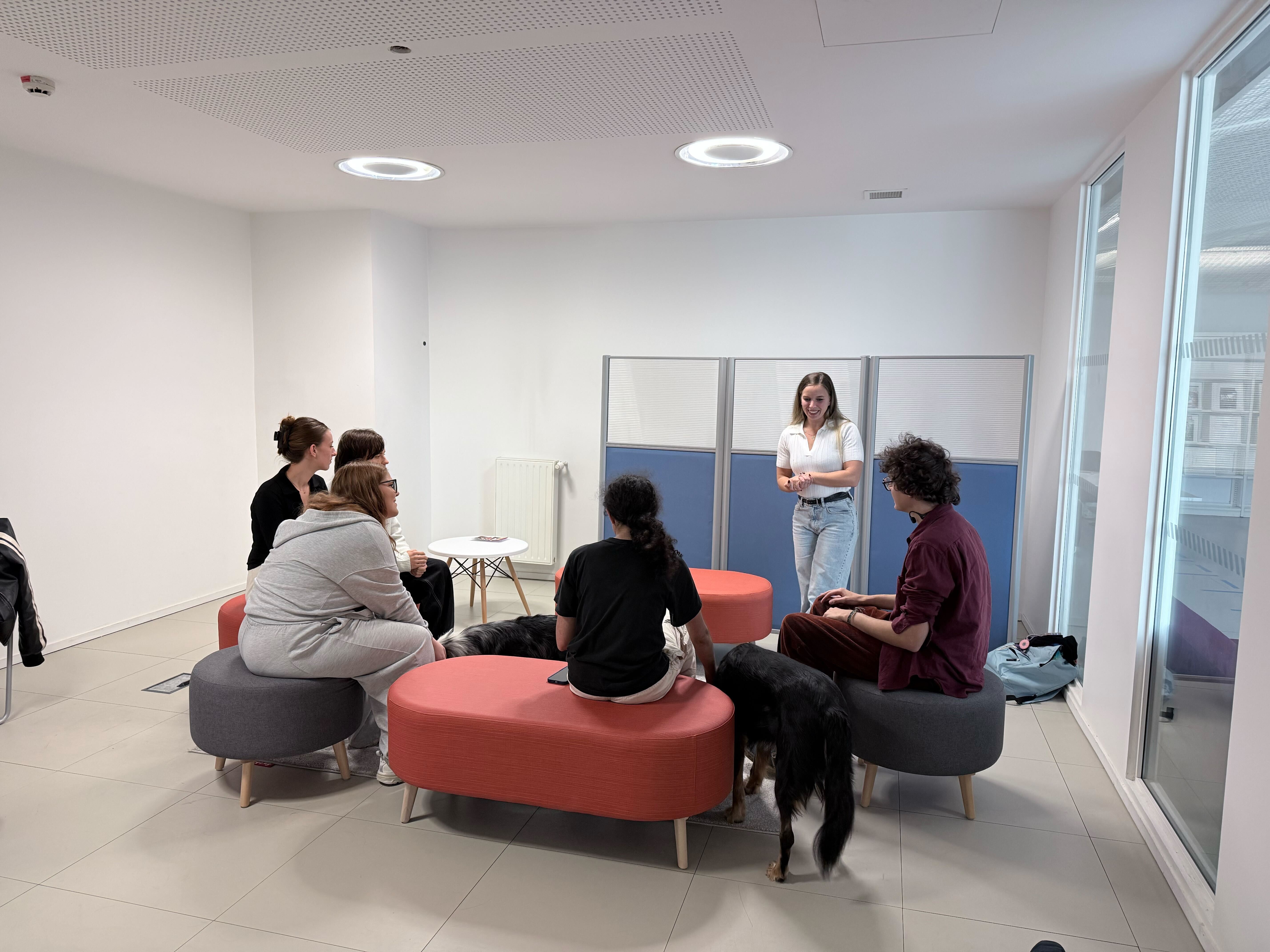 Manon, spécialiste en zoothérapie, anime ces ateliers en compagnie de ses trois chiens, véritables partenaires de bien-être. La présence des animaux crée une atmosphère chaleureuse et détendue, idéale pour favoriser les échanges entre les étudiants, mais aussi pour encourager la création de liens sociaux. Ces séances permettent aux étudiants de différentes filières, souvent peu amenés à se rencontrer, de se retrouver autour d'une expérience commune et apaisante. Un excellent moyen de tisser des liens et de sortir de l'isolement.